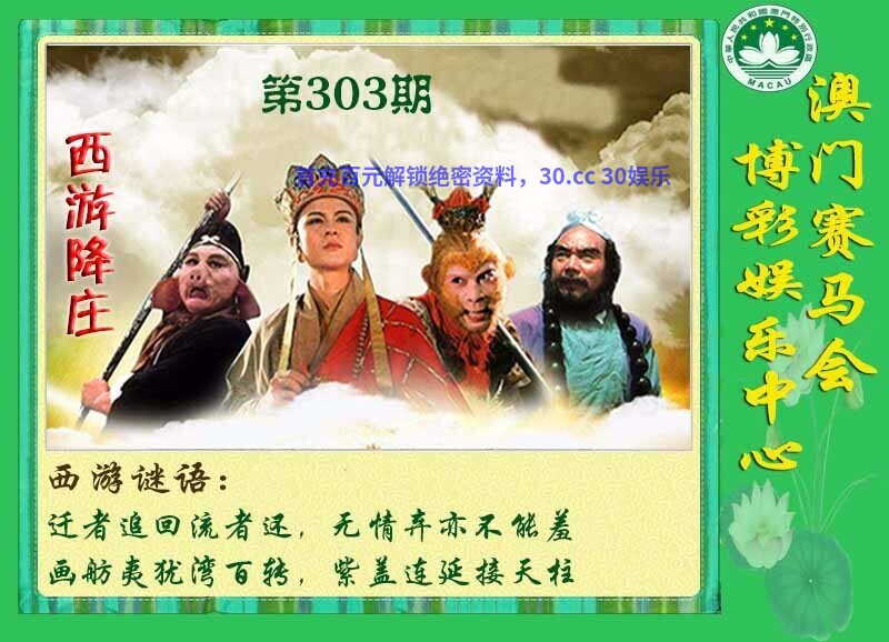 303期天机诗: 火眼金睛闹天宫,九九归一取真经。送:龙马蛇猴牛 推荐:2034头+蓝红波(开兔15) |